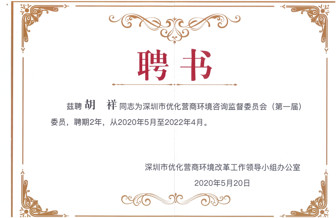 深圳市近日印發(fā)了《深圳市2020年優(yōu)化營商環(huán)境改革重點(diǎn)任務(wù)清單》,作為全面貫徹落實(shí)總書記關(guān)于率先加大營商環(huán)境改革力度的重要指示精神的一項(xiàng)具體舉措,率先加大營商環(huán)境改革力度,努力創(chuàng)建一流營商環(huán)境,持續(xù)解決企業(yè)和市民關(guān)心的重點(diǎn)問題。深圳市把優(yōu)化營商環(huán)境列為“一號改革工程”,5月20日,市發(fā)改委在市民中心召開深圳市優(yōu)化營商環(huán)境咨詢監(jiān)督委員會(第一屆)第一次會議,并宣布委員會成立,北科生物胡祥博士受聘為委員會副主任委員。市發(fā)改委副主任郭躍華出席會議,并為受聘委員頒發(fā)聘書。郭躍華副主任表示,營商環(huán)境是各個國家、地區(qū)在經(jīng)濟(jì)發(fā)展中非常注重打造的招牌。深圳作為中國特色社會主義先行示范區(qū),在優(yōu)化營商環(huán)境方面要走在第一陣列,要當(dāng)先鋒、做樣本、做標(biāo)桿,這也是優(yōu)化營商環(huán)境咨詢監(jiān)督委員會的一個重要使命。