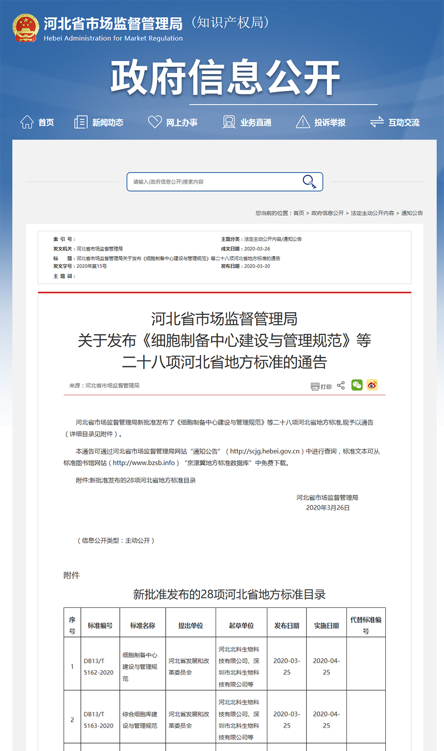 3月25日,河北省市場(chǎng)監(jiān)督管理局發(fā)布通知,《細(xì)胞制備中心建設(shè)與管理規(guī)范》(編號(hào):DB13/T5162-2020)、《綜合細(xì)胞庫建設(shè)與管理規(guī)范》(編號(hào):DB13/T5163-2020)正式批準(zhǔn)發(fā)布,將于4月25日正式實(shí)施。兩項(xiàng)標(biāo)準(zhǔn)是河北省標(biāo)準(zhǔn)化體系建設(shè)的重要組成部分之一,由河北省市場(chǎng)監(jiān)督管理局組織,河北省發(fā)展和改革委員會(huì)提出,河北北科生物科技有限公司,深圳市北科生物科技有限公司、個(gè)體化細(xì)胞治療技術(shù)國家地方聯(lián)合工程實(shí)驗(yàn)室(深圳)共同編制完成。