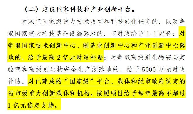 對承擔(dān)國家級重大技術(shù)攻關(guān)和科技轉(zhuǎn)化任務(wù),以及爭取國家重大科技基礎(chǔ)設(shè)施落地的給予財(cái)政補(bǔ)貼。