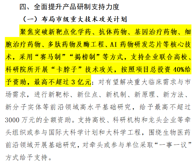 《措施》中重點(diǎn)提到,對基因治療藥物、細(xì)胞治療藥物等核心技術(shù),支持企業(yè)聯(lián)合高校、科研院所開展“卡脖子”技術(shù)攻關(guān),給予最高3億元的資助。